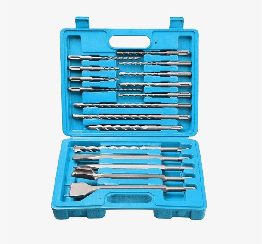 Набор буров и долот для перфоратора SDS+ 17 предметов в пластиковом кейсе.