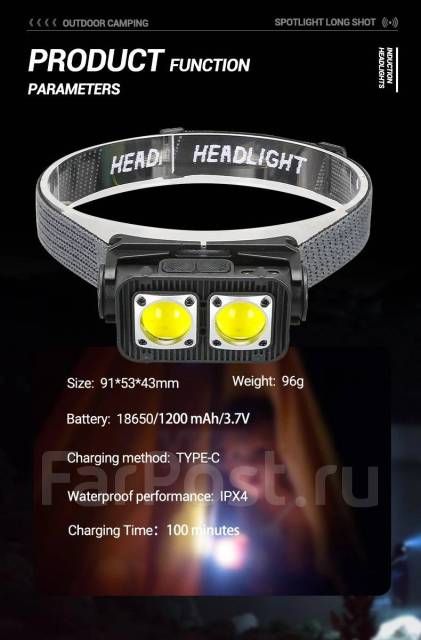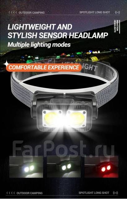 Так же фонарь имеет красный цвет,работает в аналогичном режиме ,мощность 300 лм. Фонарь имеет класс водонепроницаемости IPX4, что означает, что он может выдержать брызги воды со всех сторон. Размер фонаря - 91 x 53 x 43 мм, а материал корпуса - абс + силикон. Цвет фонаря - черный. Фонарь имеет датчик движения, который позволяет включать и выключать свет простым жестом руки перед ним. Это очень удобно, когда вы хотите освободить руки или не хотите нажимать кнопки. Датчик движения работает только в темноте, чтобы не тратить зря энергию. Диапазон действия датчика - около 10 см. Диапазон освещения фонаря - от 100 до 200 метров в зависимости от режима и цвета света. Этот налобный фонарь с датчиком движения - незаменимый помощник для тех, кто любит путешествовать, кемпинговать, велосипедить, лазить по горам или просто гулять по ночам. Он легкий, компактный, удобный и надежный.