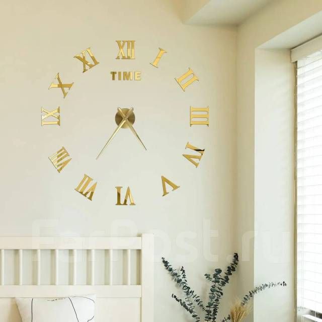 Большие 3D часы Российского производства. Элементы часов изготовлены из высокоглянцевого акрилового пластика (ВНИМАНИЕ! для сохранности на элементах и чаше нанесена защитная пленка, которую необходимо снять после установки). С обратной стороны уже приклеена вспененная основа с клеящим слоем.Вам остается только расположить часы на стене. Клеящий слой позволяет разместить часы на различные поверхности: любые виды обоев, окрашенные, деревянные, пластиковые, керамические или металлические. В комплекте к часам идет шаблон для разметки. С его помощью, Вы сами выбираете желаемый диаметр часов и делаете отметки на стене, куда будут клеиться элементы. Центральная чашка с механизмом, выполненная из металла. Стрелки выполнены из алюминия. Длина минутной стрелки - 31,5 см, часовой - 23.5 см. В этих часах используется механизм плавного хода.