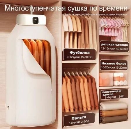 Нагревательный элемент PTC не только обеспечивает безопасность сушилки, но и стерилизует и дезодорирует одежду в процессе сушки. Эта функция особенно полезна людям с чувствительной кожей или аллергиками. В целом, портативная мини-сушилка - отличная инвестиция для тех, кто ищет быстрый, удобный и безопасный способ сушки одежды, особенно в небольших жилых помещениях, таких как квартиры, общежития и фургоны на колесах.