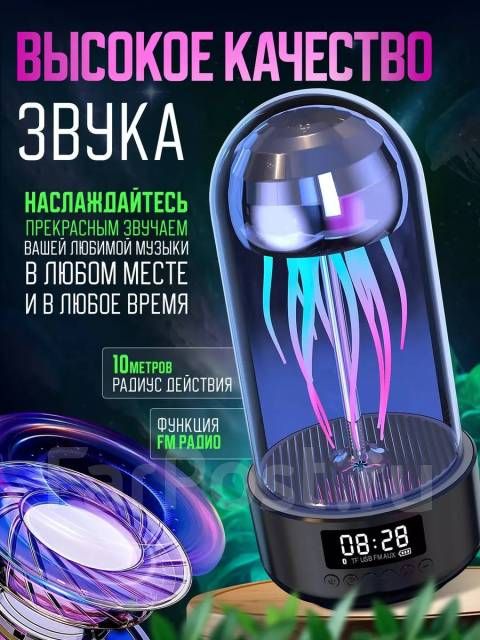 Механический динамик-медуза с Bluetooth, большая емкость 2000 мАч, 8 часов автономной работы, устройства подключения Bluetooth, 7 красочных окружающих огней, которые также могут стать ночным светом.