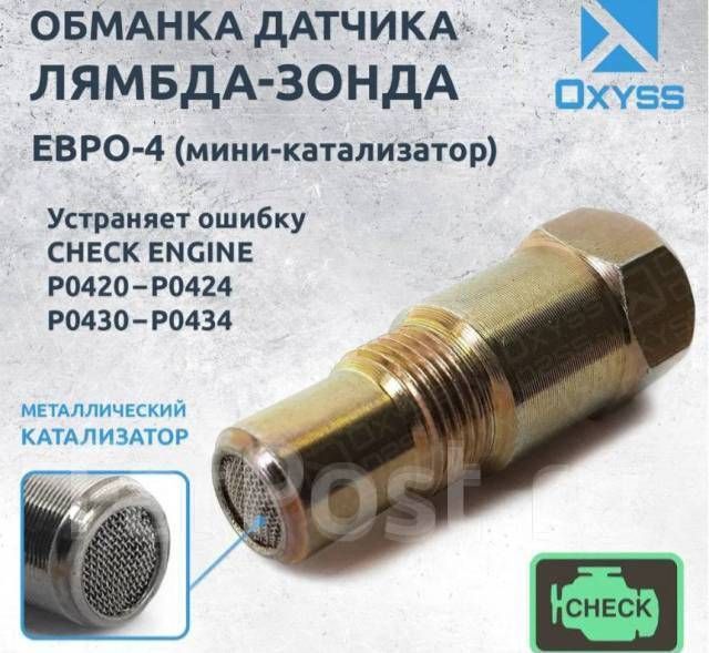 Обманка датчика лямбда зонда, установленный внутри металлический катализатор корректирует показатели датчика, не допускает появление ошибки Chek Engine. Обманка катализатора применяется на автомобилях со стандартом Евро 4-5