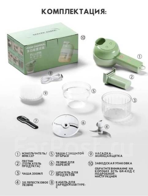 измельчитель, провод для зарядки, коробка