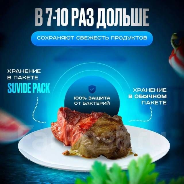 Пакеты для вакууматора имеют идеальный размер 20х30 см., набор состоит из 50 штук. Вакуумные пакеты универсальны, а благодаря этому подойдут к любому вакууматору. Вакуумный пакет прозрачный двухсторонний: одна из сторон рифленая, толщина 85 микрон, рисунок мелкий квадрат - позволяет проводить вакуумирование в максимальной степени, а другая сторона гладкая 95 микрон. Вакуумные пакеты уже имеют необходимый размер и форму, что облегчает их использование. В то время как рулон нужно самостоятельно отрезать до нужного размера, что может быть не всегда удобно и точно. Проверяйте совместимость ширины пакеты и максимально возможную длину запаячной ленты Вашего вакуумного упаковщика. Пакетики изготовлены из пищевого полиэтилен-полиамида. Современная технология производства ламинированных рулонов заключается в том, что пленка из полиэтилена (PE) ламинируется пленкой из полиамида, обеспечивая полную безопасность даже при высоких температурах, безопасны для здоровья и не влияют на вкус и запах пищи. Пленка покрывая продукт создает вакуум, не позволяя попасть внутрь влаге, насекомым, бактериям, грибкам, продлевая свежесть ваших продуктов и срок их хранения от 3 до 10 дней, по сравнению с хранением в полиэтиленовых пакетах или контейнерах. Пакеты для вакууматора идеально подходят для заморозки и хранения в морозильной камере и холодильнике, разогрева в микроволновой печи. Пакеты могут использоваться дома для упаковки продуктов питания. Например, овощи и фрукты, крупы, сухофрукты, ягоды, сладости, рыба, колбасные изделия и полуфабрикаты. Еще один из способов использования - маринование продуктов, например мясо за счет вакуума, замаринуется намного быстрее. А так же пакеты подойдут для хранения и безопасной транспортировки особо ценных вещей - например деньги, паспорт и другие, за счет полной герметизации и влагостойкости. Также можно использовать наши пакеты для приготовления пищи по французской технологии - Су-вид (sous-vide). Пакеты выдерживают температурный режим от -40 до +90C (не подходит для запекания). Пакеты для вакууматора станут приятным незаменимым подарком для мамы папы бабушки дедушки.
