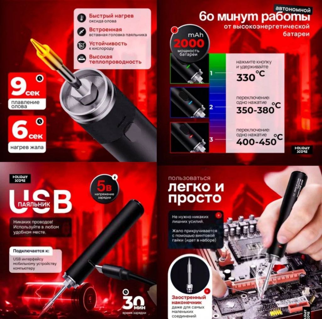 Читать все статьиПаяльник аккумуляторный беспроводной мини. USB 8W 330°-450°
