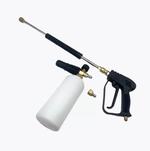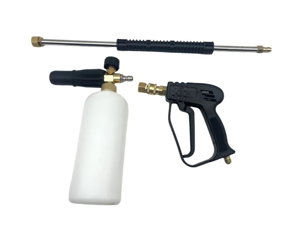 Длина пистолета составляет 60 см , что позволяет эффективно очищать труднодоступные места, такие как колесные арки автомобилей, заборы, фасады зданий и другие поверхности. Устройство оснащено системой быстрого подключения, что значительно упрощает процесс установки и замены.