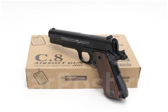 Пистолет с пульками. Игрушечный металлический пистолет с8 или кольт 1911- мощный и точный! Colt 1911 - Железный пистолет высокого качества, подойдет для стрельбы по мишеням, точность можете посмотреть видео. Пистолет имеет подвижный затвор ( курок, обойма - пластик ) . 6 мм калибр . крепкая дополнительная упаковка. Игрушечный пистолет - отличный подарок для мальчика.