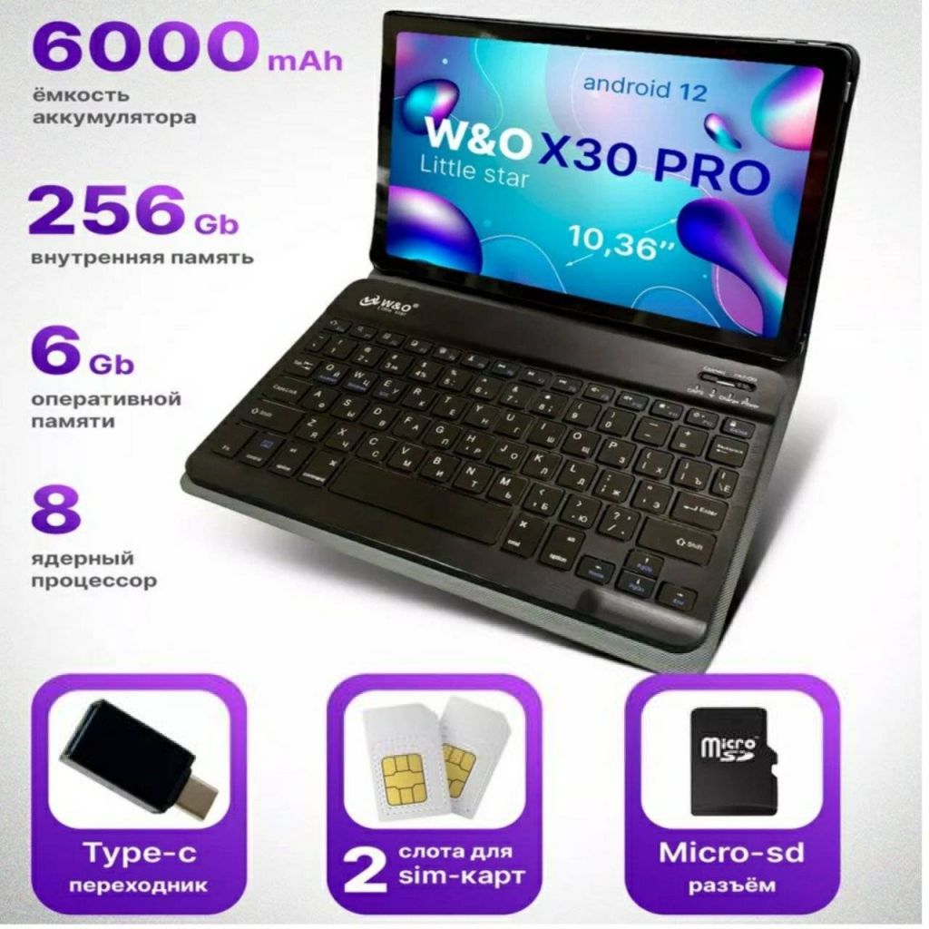 Читать все статьиПланшет с клавиатурой W&O 5g,6/256гб ANDROID 12