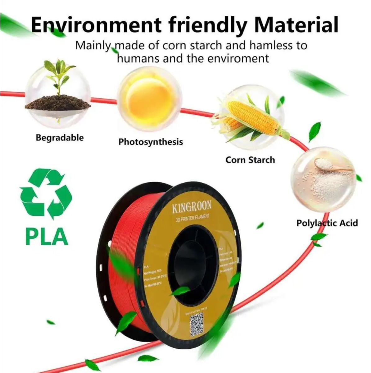 Пластик для 3D принтера KINGROON PLA - это качественный материал, который обладает прочностью, износостойкостью и эластичностью. Данная нить безопасна в использовании и не имеет постороннего запаха. Помимо прочности, этот материал отличается высокой упругостью и небольшим весом. Пластик, изготовленный из полимеров, является наиболее используемыми в производстве 3D филаментов. Пластик плавится при температуре 200 - 220 градусов и представляет собой нить диаметром 1.75 мм. Прутки имеют широкий спектр применения, даже под воздействием высокой механической нагрузки изделия из этого материала не деформируются, на них не появляется трещин и участков разрушения. Использование качественных красителей (суперконцетратов), произведенных нашей компанией, которые базированы на однородных с материалом филамента материалах, сводит к минимуму отрицательное воздействие последних на качество печати. Материал не наносит ущерб окружающей среде. Хранить катушку с нитью необходимо в сухом месте. Желательно просушить перед печатью, 4 часа при температуре 70 градусов. Нить PLA пластик доступна в широком разнообразии цветов. Цвет катушки может отличаться.