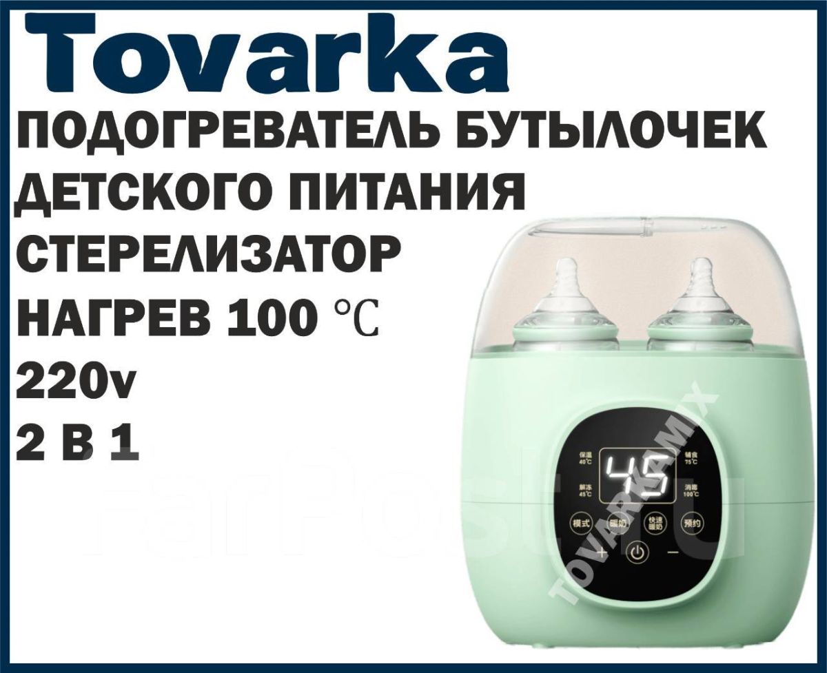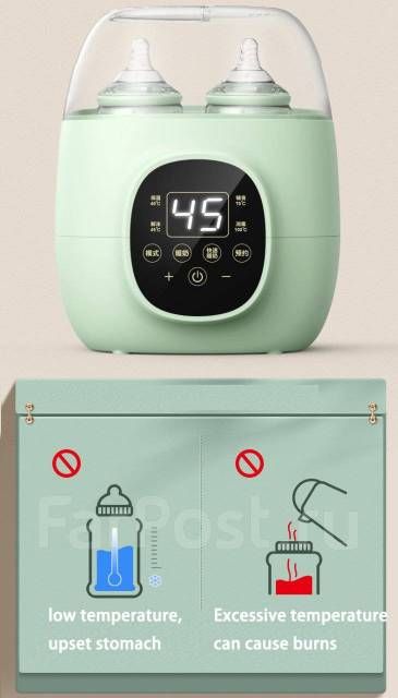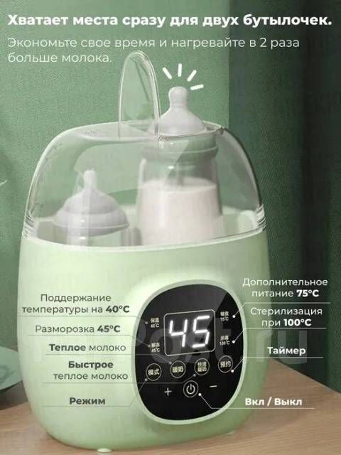 Независимо от того, кормит ли мама своего малыша грудным молоком или детским питанием, Наш подогреватель детских бутылочек HJ-B01 от NICEKIDS станет незаменимым помощником и отличным подарком для молодых родителей! Подогрев 2 бутылочек занимает около 15-20 минут. Разморозка продуктов регулируется в диапазоне от 30 до 90 градусов. Стерилизация бутылочек, либо других предметов на 100 градусах. В режиме стерилизации есть автоматическое отключение (Полное выпаривание воды подразумевает автоматическое отключение стерилизатора). В крышке подогревателя имеется отверстие для высоких бутылочек. В комплекте с подогревателем идет поддон для мелких детских аксессуаров. Функция разморозки подойдет для мам, замораживающих грудное молоко в специальных пакетах. Также Вы можете нас найти по запросам: стерилизатор для бутылочек, подогреватель для бутылочек. Устройство работает в нескольких режимах: Поддержание темпреатуры 40, разморозка на 45, подогрев доп.питания 75 , стерилизация бутылочек