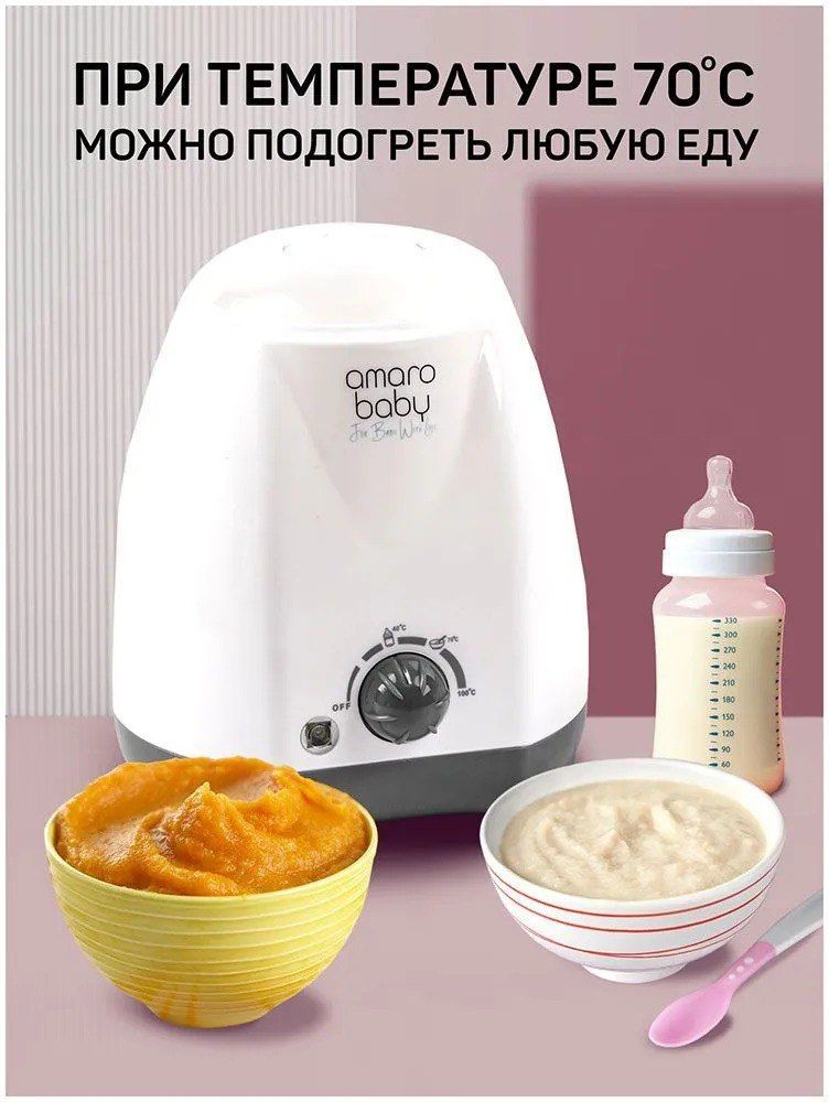 Подогреватель Amarobaby для детского питания разогреет молоко и другую пищу, сохраняя все полезные свойства, содержащиеся в продуктах.