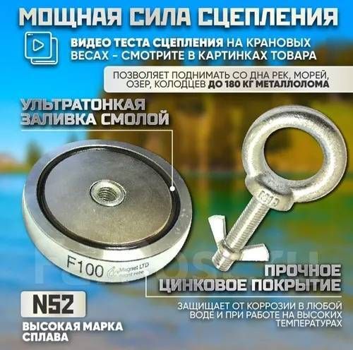Читать все статьиПоисковый неодимовый магнит F100,сила сцепления: 180 кг, 12Х58ММ