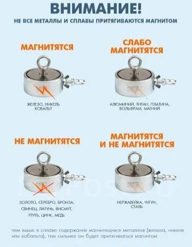 При небольшом весе, этот не внушительного размера поисковый магнит способен удержать до 180 кг килограмм металла, при условии что магнит примагничен к плотному (15мм) ровному металлу по диаметру всей поверхности магнита, а благодаря стальному корпусу магнит способен выдерживать самые экстремальные нагрузки, что делает его практически вечным. Он будет для вас уникальным помощником в поиске металлических предметов в водоемах, колодцах, различных грунтах и на суше , будет для Вас поисковый магнит F 100.