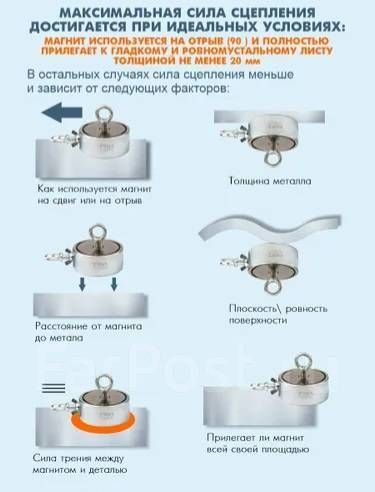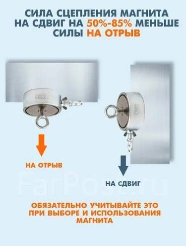 Сцепление до 180 кг (Под углом 90 градусов ,при сцеплении по всей поверхности магнита с ровной металлической поверхностью толщиной 15мм. Сила на сдвиг в бок, всегда меньше на 30%)
