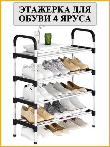 Напольная подставка для обуви для любых помещений: дом, офис, гараж, общепит. Подставка для обуви 4-полочная впишется практически в любой интерьер. На ней Вы сможете разместить всю обувь. Разборная конструкция позволяет приобрести данное изделие в коробке. Металлический усиленный каркас. Пластиковые колпачки на ножках защищают поверхность пола от царапин.