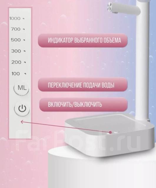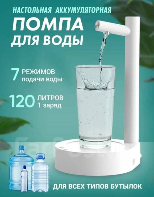 Настольная автоматическая помпа - это идеальное решение для быстрого и удобного налива воды. Настольная электрическая помпа для воды подходит для любых бутылей - 5, 10 и 19 литров. Стационарная помпа имеет компактный размер и стильный дизайн, что позволяет установить в любом удобном месте на кухне, а при необходимости убрать бутыль в шкаф. Помпа для воды станет незаменимым помощником в быту, особенно для семей с детьми. Одно из главных преимуществ - это удобство использования . Длительным нажатием кнопки ВКЛ. ( 2 секунды) аппарат включается, однократным нажатием кнопки ВКЛ запускается / останавливается насос. При включении устройство по умолчанию настроено на последний объем воды, можно выбрать необходимый объем – 100 , 200, 300, 500 ,700, 1000 мл. (на каждом индикаторе горит соответствующая подсветка) или неограниченный набор воды - горят все кнопки индикатора. Помпа работает от аккумулятора, заряжать можно от любых приборов, где есть USB разъем, а также от сети. Зарядки аккумулятора хватить до 90 дней работы помпы. Когда уровень заряда батареи ниже 10 % , индикатор быстро мигает, напоминая о времени зарядки . После 2 минут ожидания аппарат переходит в спящий режим. Переносную помпу можно использовать дома, в офисе, на даче, взять с собой на природу и станет отличной альтернативой кулеру, который, как правило, занимает очень много места. В отличие от ручной помпы (механической), где нужно прикладывать усилия, чтобы набрать необходимое количество жидкости в стакан, вы забудете о брызгах и получите идеальный напор. Настольная помпа для воды будет хорошим вариантом подарка на любой праздник для всей семьи.
