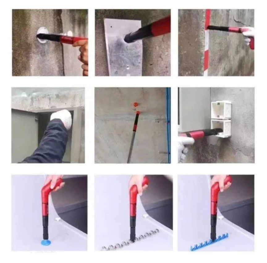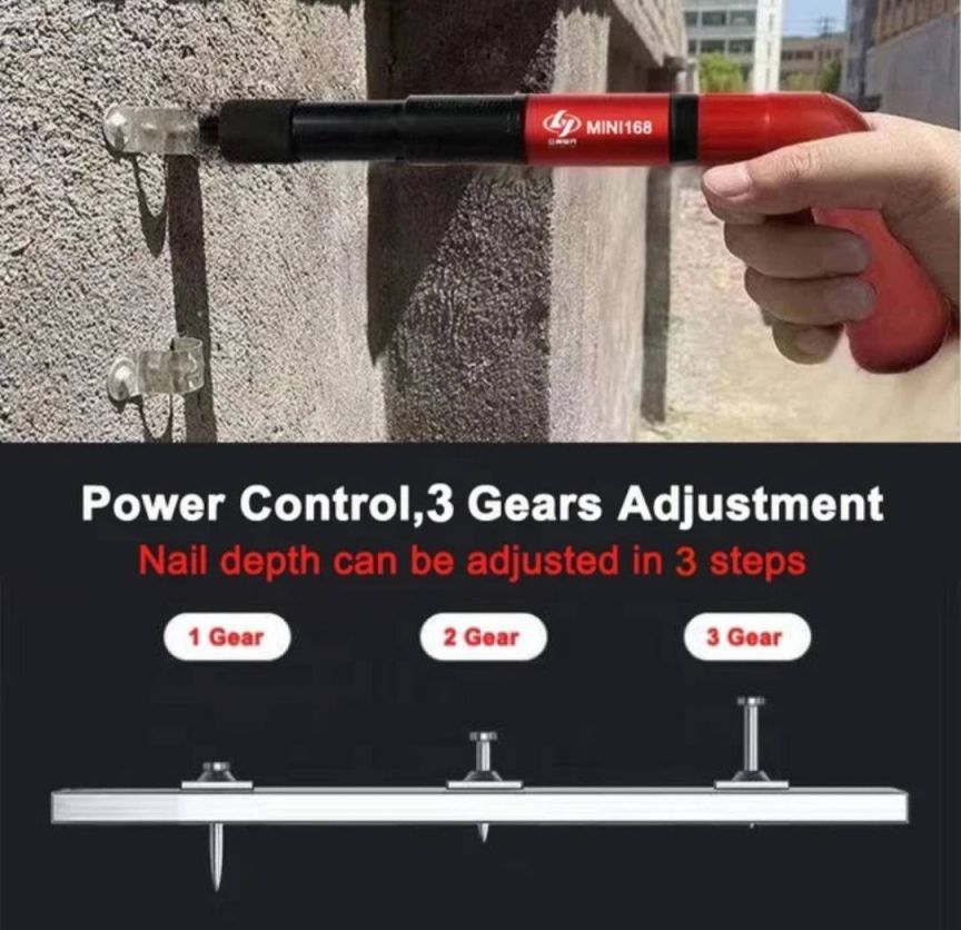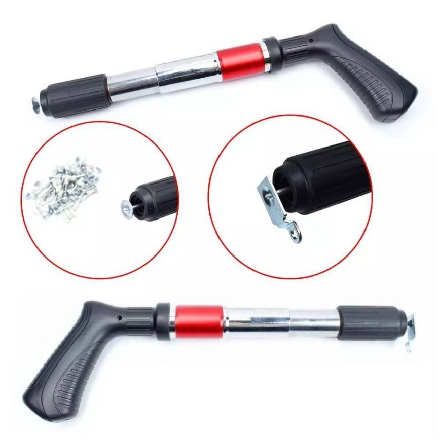 Специализированный пороховой монтажный "телескопический" пистолет для крепежа подвесных потолков, кабельных лотков, элементов освещения, воздуховодов систем вентиляции, пожарной сигнализации и т.п. Фиксация элементов крепежа подвесных потолков происходит выстрелом из конечного элемента "ствола" дюбель-гвоздём, внедряемого энергией строительного порохового патрона.