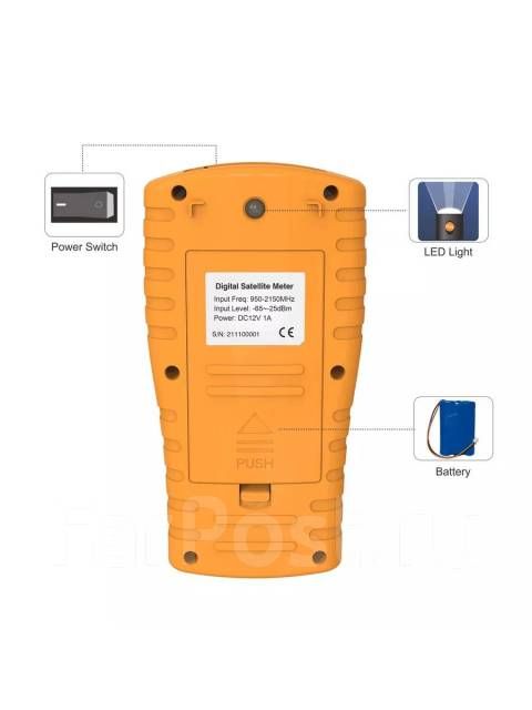 HdmiSat SF-760 - портативный прибор для установки и настройки спутниковых антенн, в его арсенале - цветной LCD-дисплей, меню на русском языке, встроенный аккумулятор, дублирование качества сигнала на светодиодном табло, USB порт для редактирования данных, встроенный светодиодный фонарик и компас. Модель выполнена в легком, но прочном пластиковом корпусе и имеет удобный измеритель уровня/качества сигнала. Большим преимуществом является возможность отображать уровень сигнала транспондеров с модуляцией DVB-S2. Для поиска определенного спутника, необходимо ввести (выбрать) соответствующие параметры, такие как частота гетеродина LNB, частота транспондера, символьная скорость, и т. д. Встроенный аккумулятор, который заряжается комплектным блоком питания 12В.