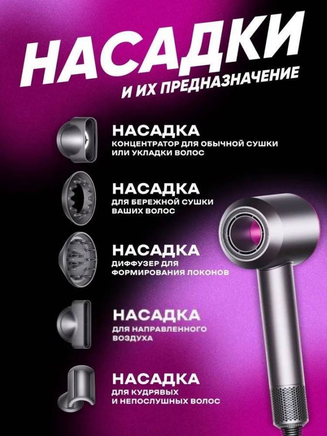 Читать все статьиПрофессиональный фен дайсон для волос Dyson 5 насадок
