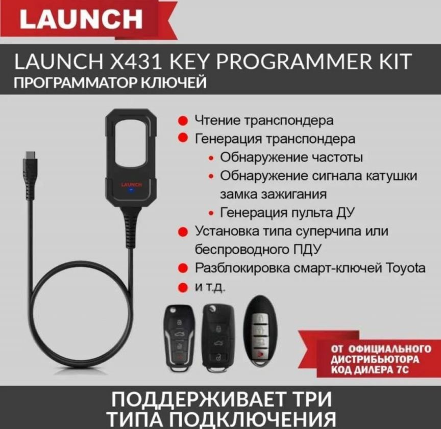 Launch X431 Key Programmer Kit - это программатор ключей, предназначенный для считывания и записи информации ключей, генерации различных типов транспондеров и брелоков. Поддерживает работу с ключами-брелоками в сборе как с чипами транспондерами, так и с платами дистанционного управления. Программатор является дополнением для сканеров Launch X431 и без сканера работать не будет.