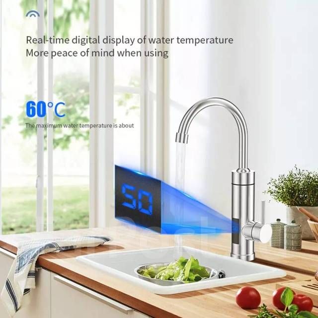 Проточный электрический водонагреватель кран с экраном хром.пластик Delimano RX-016