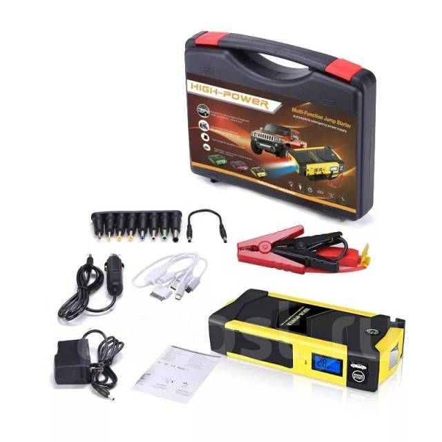 Помимо клемм для старта мотора, имеет два разъема USB и комплектуется восемью переходниками для питания различных электронных гаджетов(мобильных телефонов, смартфонов, ноутбуков, камер и т.д.). Заряжается от сети 220 В или автомобильной бортовой сети через прилагаемые к прибору адаптеры. Пускач и все аксессуары к нему поставляются в пластиковом кейсе, удобном в переноске и хранении. Запустит бензиновый или дизельный автомобиль, мотоцикл, катер с полностью разряженным аккумулятором. Обеспечит работу различных устройств: телефон, планшет, ноутбук, насос, компрессор, пылесос. Заменит фонарь.