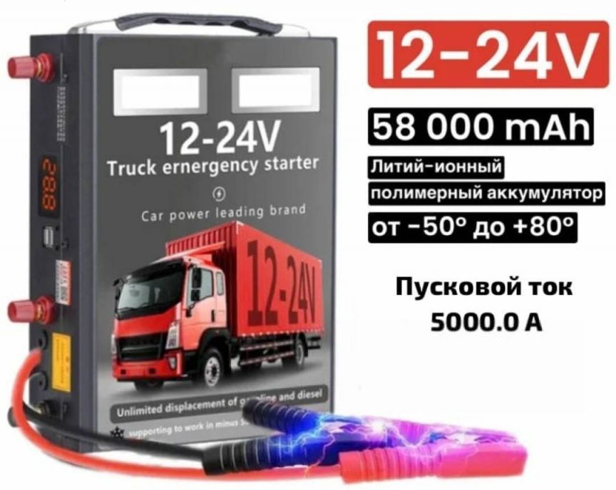Емкость встроенной батареи; 58000.0 мАч Минимальный ток пуска: 400.0 А Максимальный ток пуска: 5000.0 А Напряжение питания от сети: 220 В.д