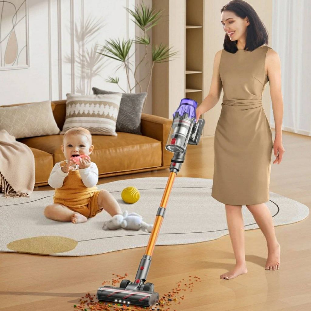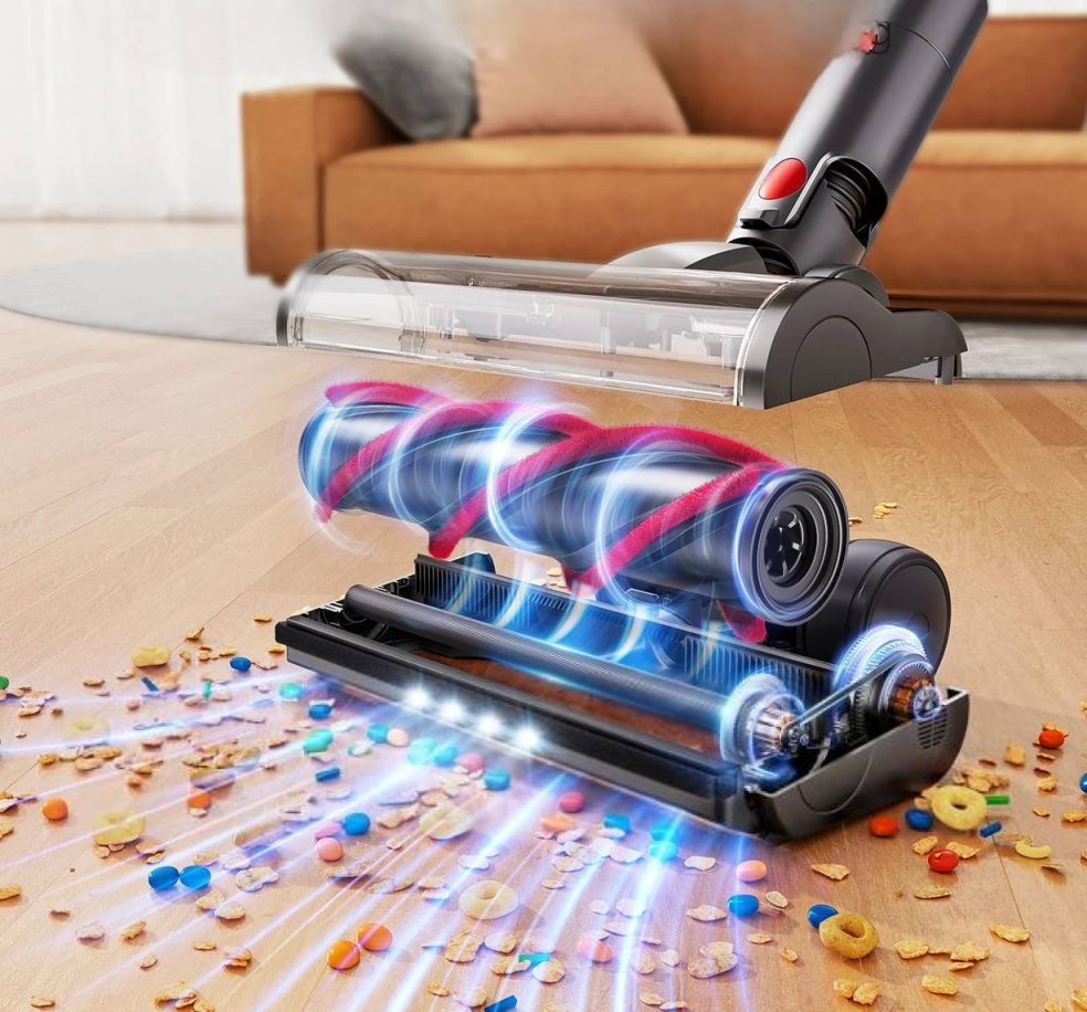 светодиодный экран отображает уровень заряда батареи в режиме реального времени, а мощность всасывания можно регулировать произвольно, потянув за стержень всасывания.