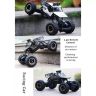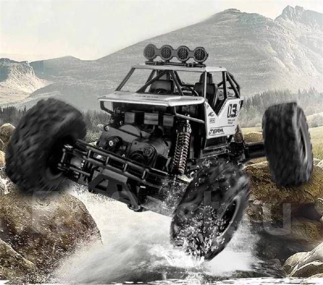 Машинка на пульте радиоуправления, с большими резиновыми колёсами. Независимая подвеска, хорошие пружины, высокий клиренс. Машинка довольно резвая и мощная, легоко карабкаеться в подъёмы и заезжает на ступеньки. Отлично едет по бездорожью ровняет под собой траву. Лично проверил все её ходовые качества, фото оригинальные. Частота пульта 2.4 герц, пульт настраивается только на эту игрушку, и другие помехи не будут мешать. При движении горят фары.