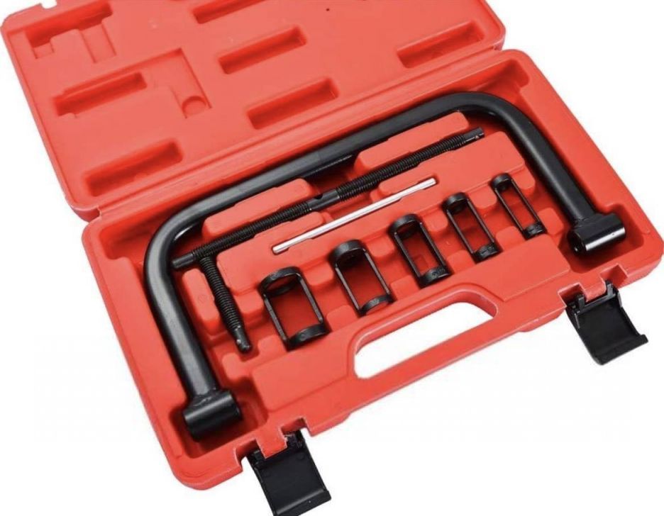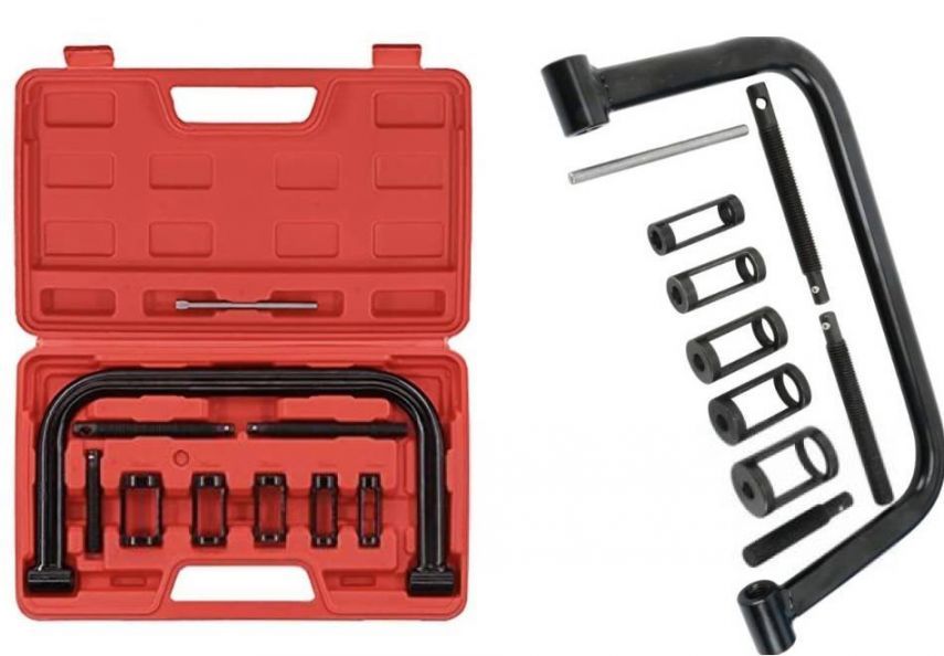 Этот инструмент сжимает пружину клапана, удерживая клапан на месте в головке и одновременно нажимая на фиксатор пружины клапана, чтобы освободить замки пружины клапана.