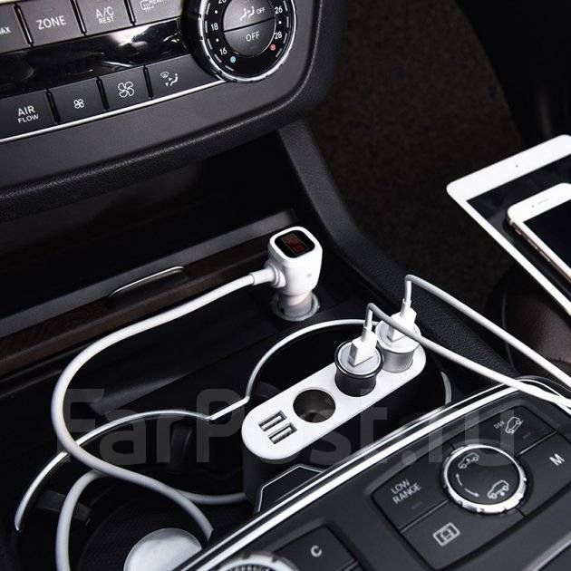 Зарядное устройство имеет не только два выхода USB, но и три дополнительные розетки на 12 вольт