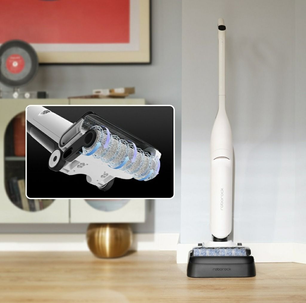 Благодаря технологии автоматической самоочистки Roborock для пылесосов влажной уборки, Roborock Flexi Lite самоочищается с помощью роликового скребка и модуля распыления воды, обеспечивая сверкающую чистоту во время уборки пола.