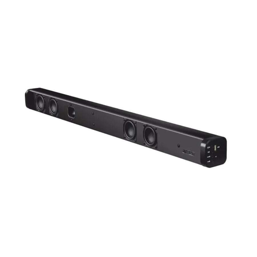 Корпус Саундбар имеет правильную геометрическую форму. Тонкое прямоугольное устройство легко разместить на стене или на тумбочке рядом с телевизором. Корпус саундбара изготовлен из качественного пластика классического черного цвета, благодаря чему он гарантированно впишется в цветовую гамму комнаты.