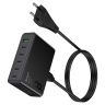 HOCO C152A — это мощное многофункциональное зарядное устройство с суммарной мощностью 70 Вт, оснащённое пятью портами USB Type-C и одним USB-A.