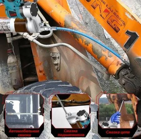 Аккумуляторный шприц для смазки предназначен для технического обслуживания тяжелой техники и автомобилей. Совместим с аккумуляторами Makita/Makota .