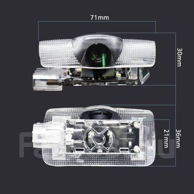 При открытии двери создается лазерная проекция логотипа вашего автомобиля на поверхности под дверью. Это не только привлечет внимание к вам и вашему авто своей индивидуальностью, но и создаст дополнительное освещении при выходе из машины. Монтируется в обшивку двери, подключается к концевикам.