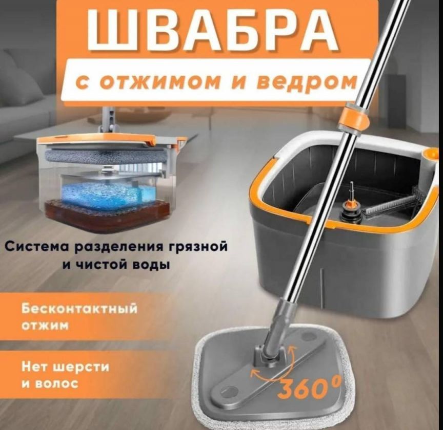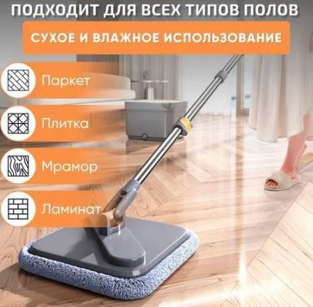 Антибактериальная Антистатический эффект. Впитывающая. Вращающаяся насадка.С отжимом. Телескопическая ручка.