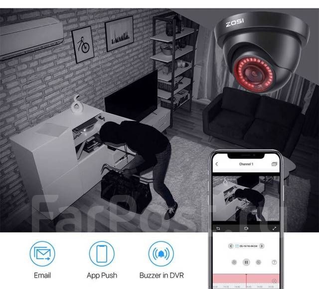 Система безопасности ZOSI DVR позволяет настраивать зону обнаружения движения в каждой камере, уменьшая количество ложных срабатываний, и получать оповещения о клипе движения только тогда, когда там что-то происходит.