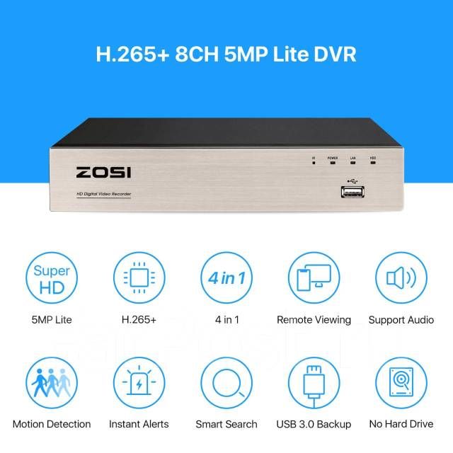 Читать все статьиСистема комплект видеонаблюдения ZOSI 1080p, 8 камер, каналов