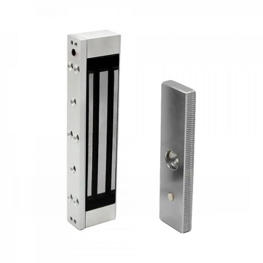 Электромагнитный замок. Электромагнитный замок с усилием удержания до 180 кг. Подходит для большинства типов дверей, которые открываются наружу или внутрь помещения. Конструкция замка выполнена из анодированного алюминия для обеспечения высокой прочности и долговечности.