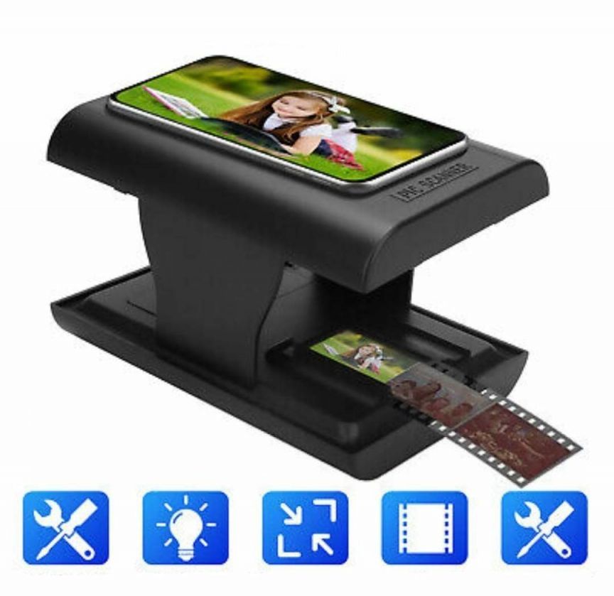 Простой в использовании-вставьте слайд или плёнку в лоток, включите Встроенный светодиодный фонарь, поместите объектив вашего смартфона через отверстие, а затем нажмите, чтобы запечатлеть. Обратите внимание: Качество фотографий будет ограничено разрешением камеры вашего телефона.