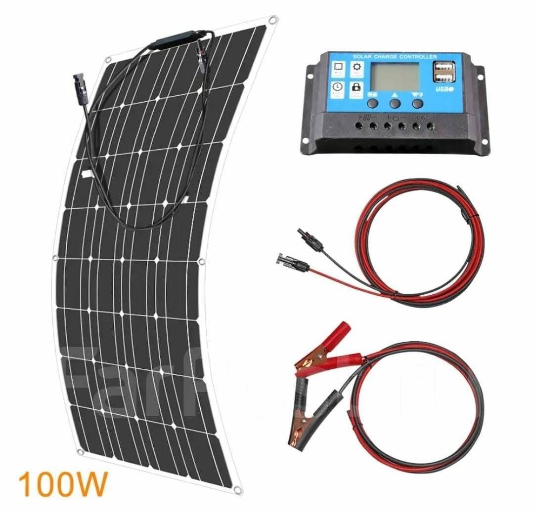 Читать все статьиСолнечная гибкая панель, батарея 100Вт провода+контроллер