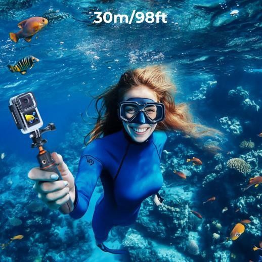 З0-метровая спортивная водонепроницаемая 4К камера. С двойным экраном.