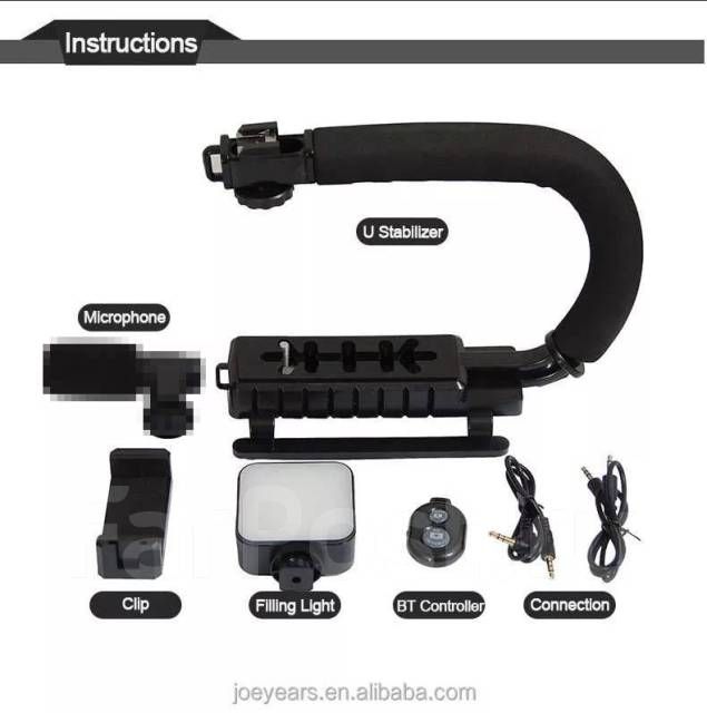 Ручная видеоустановка: состоит из U-образного портативного кронштейна, мини-светодиодной видеолампы, микрофона, держателя телефона и удаленного затвора, подходит для видеоблогов со смартфона/камеры и записи видео.