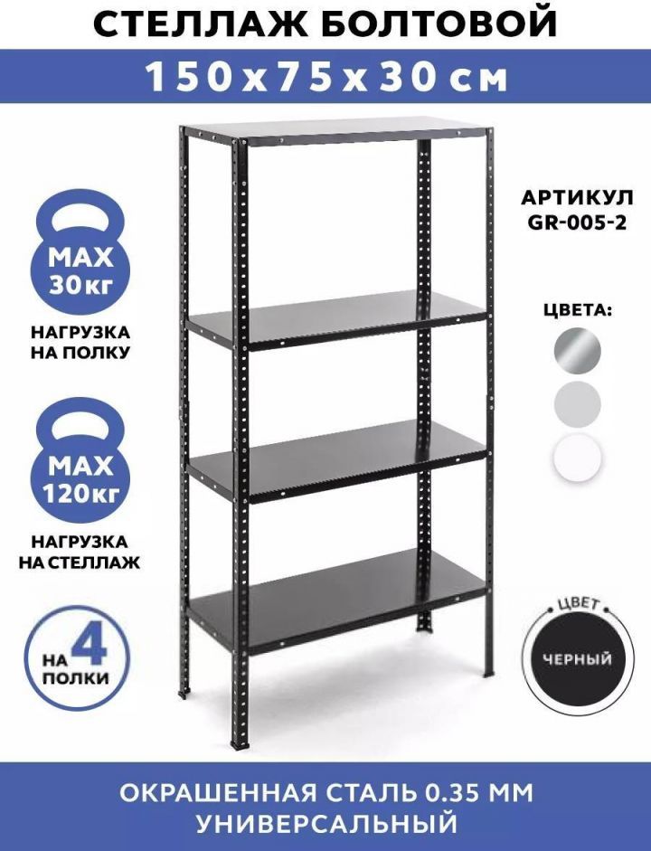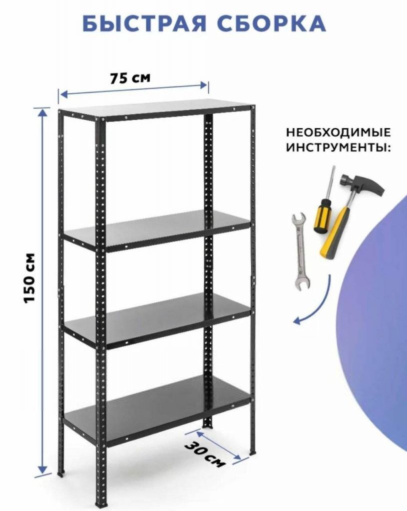 Читать все статьиСтеллаж металлический 4 полки болтовой 150x75x30