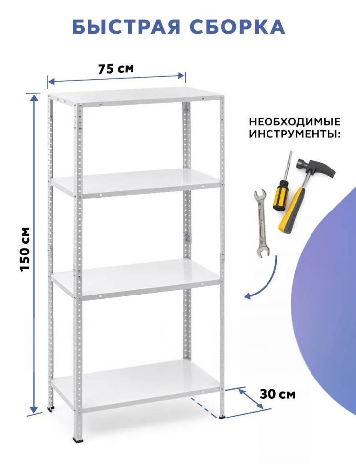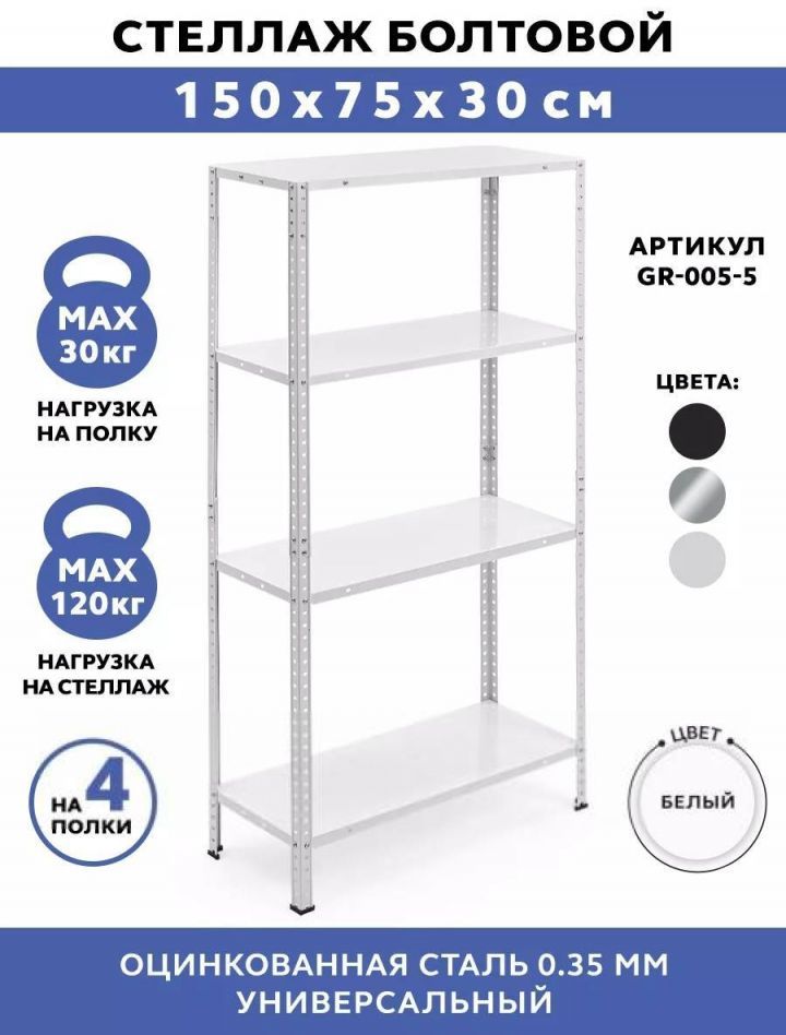 Читать все статьиСтеллаж металлический 4 полки болтовой. 150x75x30см.