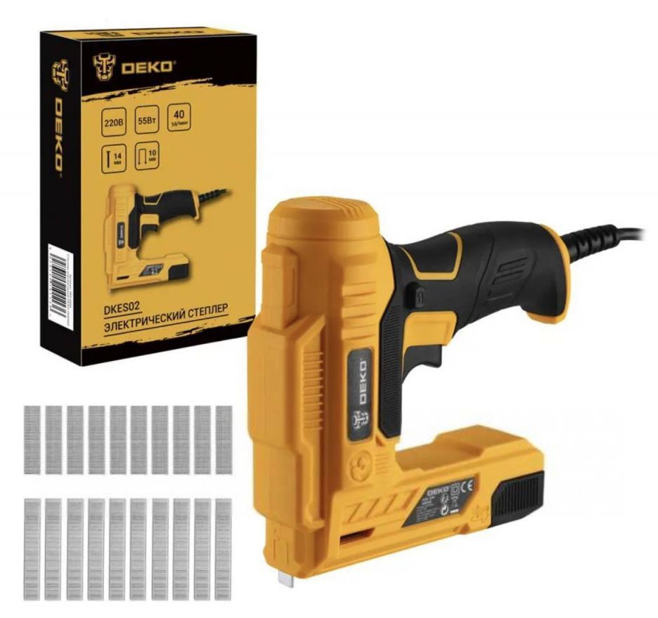 Читать все статьиСтеплер электрический DEKO DKESO2 55 Bт,мебельный,строительный