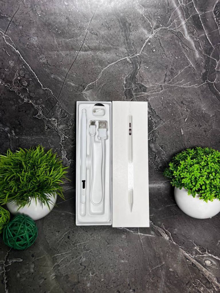 Стилус для ipad/ android/ iOS всегда готов к работе, где бы Вас не застало вдохновение! Стилус apple pencil совместим только с планшетами айпад, имеет высокое качество исполнения и является копией Apple pencil 2 поколения. Пенсил имеет высокоточный наконечник, не царапает экран, четко распознает уровень наклона и силу нажатия, что позволит Вам менять толщину линий без разрыва, прорисовывать тонкие линии, делать контуры разной ширины, создавать тени. Благодаря функции защиты от случайного касания, ваши ладони могут оставаться на рабочей поверхности экрана без использования специальных перчаток. Корпус выполнен из высококачественного пластика и алюминия, удобно лежит в руке и повторяет форму ручки. Используя магнитное крепление ручка стилус устанавливается на одну из граней планшета, где будет всегда под рукой и точно не потеряется! Модель имеет 4 индикатора уровня заряда, емкостный аккумулятор на 130 мАч, время работы достигает до 6-10 часов. Заряжается стилус для рисования от кабеля TYPE-C (в комплекте) в течение 60-90 минут. Энергосберегающий режим экономит заряд аккумулятора, стилус для айпада выключается через 30 минут бездействия.