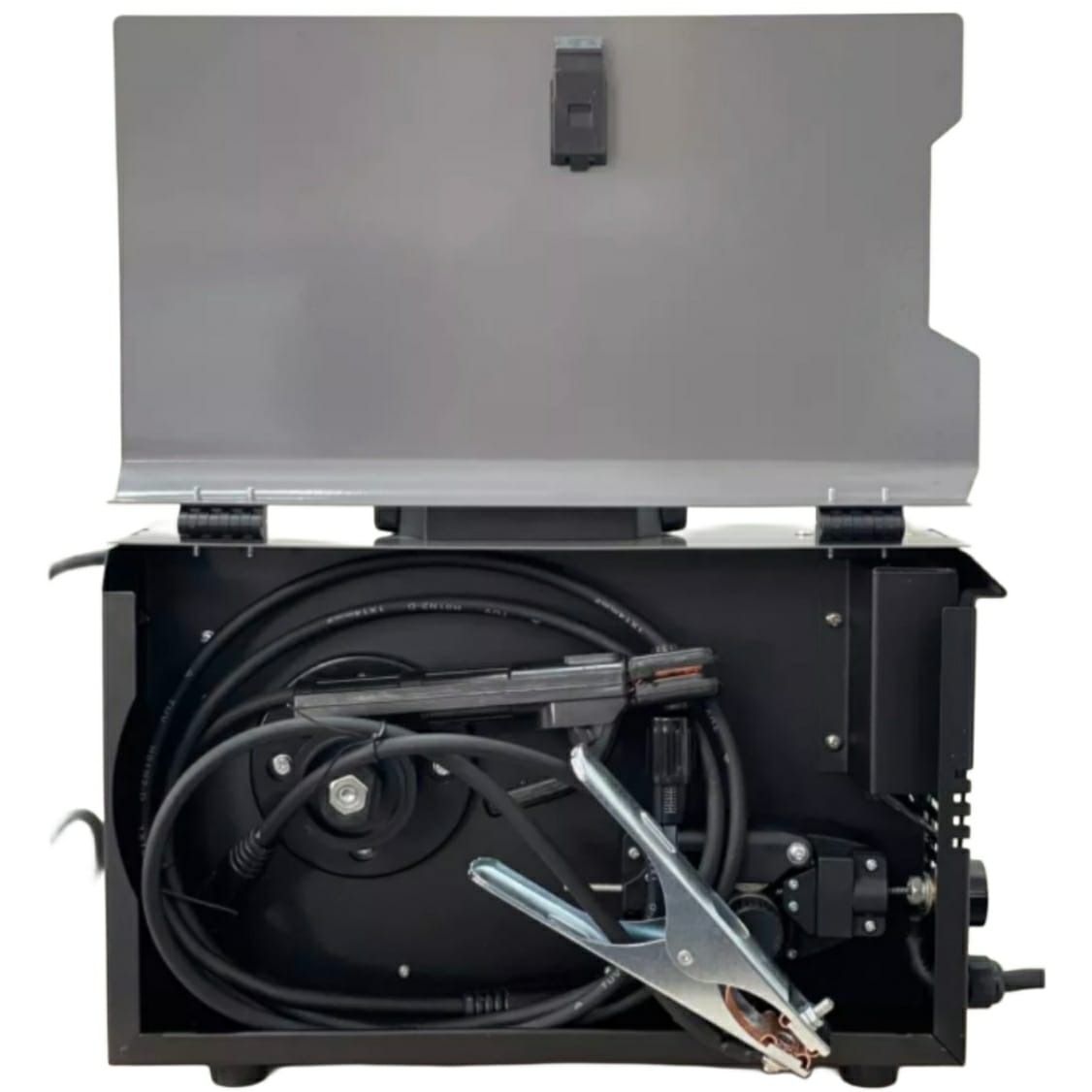 В комплектацию входят следующие элементы: сварочный аппарат 3 в 1, разъемный пистолет (покрытый медью алюминием) длиной 16 мм, соединительный провод (также покрытый медью алюминием) длиной 16 мм, кабель 2 + 1 метра * 14 мм, сварочные плоскогубцы на 200 А и зажим заземления на 300 А.