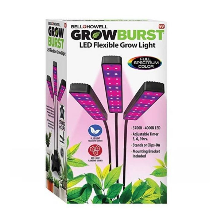 Фитолампа для растений (фитолампа для рассады), фитосветильник с 3-мя гибкими отводами по 15 Вт, 3 режимами света (фиолетовый, красный, синий) полный спектр, с таймером выключения, на прищепке, - для комнатных растений, цветов и рассады.